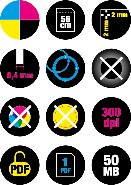 Attenzione agli elementi in sovrastampa. I colori che si vedono a monitor non devono essere considerati il risultato finale di stampa. Il file inviato viene stampato esattamente come ricevuto. Il cliente è responsabile per eventuali errori (di ortografia, digitazione, logo, carattere, ecc.). Non verranno presi in considerazione reclami su errori del progetto. Il cliente si assume la piena responsabilità se in seguito alla realizzazione dell’ordine sono stati violati i diritti di terzi. Il cliente esonera il produttore da qualsiasi pretesa di terzi derivante da tale violazione dei diritti. Effettuando l’ordine il cliente accetta le regole sopra riportate.